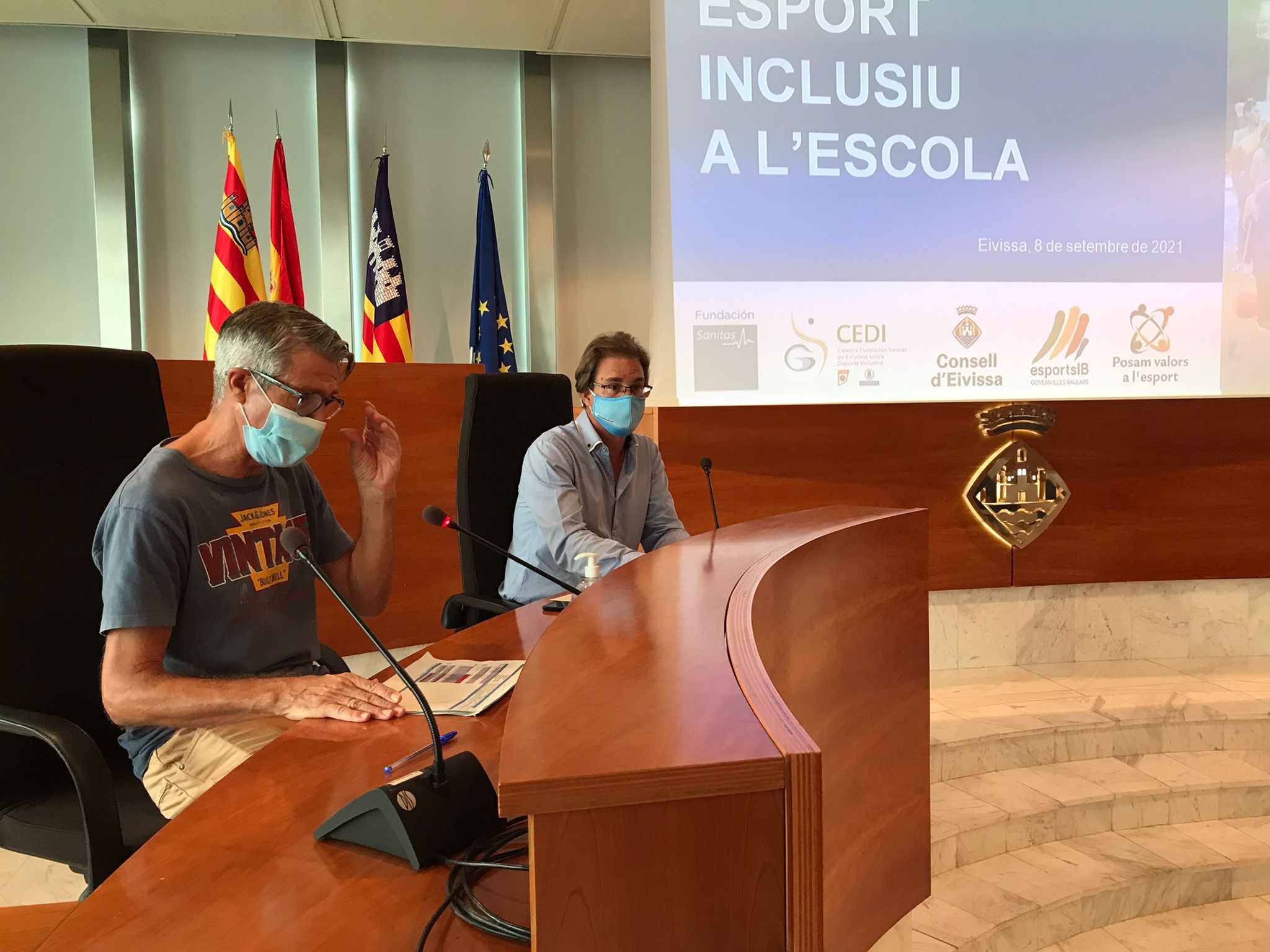 La sala de plenos del Consell Insular d’Eivissa ha acogido hoy la presentación oficial y la formación del programa "Deporte Inclusivo en la Escuela" que por primera vez se celebra en Eivissa, desarrollado por la Cátedra "Fundación Sanitas" de Estudios sobre Deporte Inclusivo, la Fundación Sanitas y la Universidad Politécnica de Madrid, con el apoyo de la conselleria de Asuntos Sociales y Deportes del Gobierno de las Islas Baleares y gracias al impulso del departamento de Hacienda, Gestión Económica, Deportes y Juventud del Consell Insular d’Eivissa.