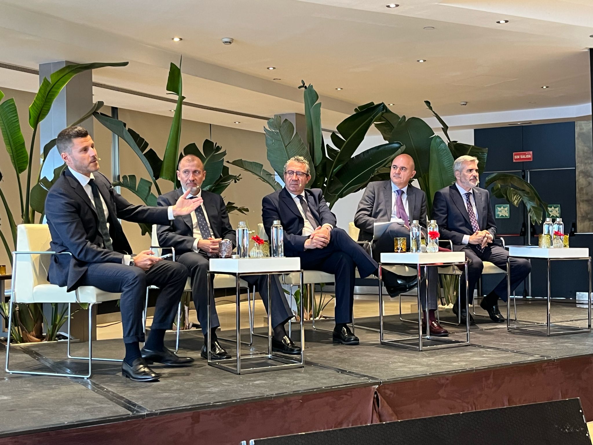 Vicent Marí ha compartit el panell sobre la gestió de la connectivitat i la mobilitat sostenible amb els president de Baleària, Adolfo Utor, el director general d’Hertz España, Javier Díaz-Laviada , l’alcalde de Benidorm, Antonio Pérez i el fundador d’OK Mobility, Othman Ktiri.